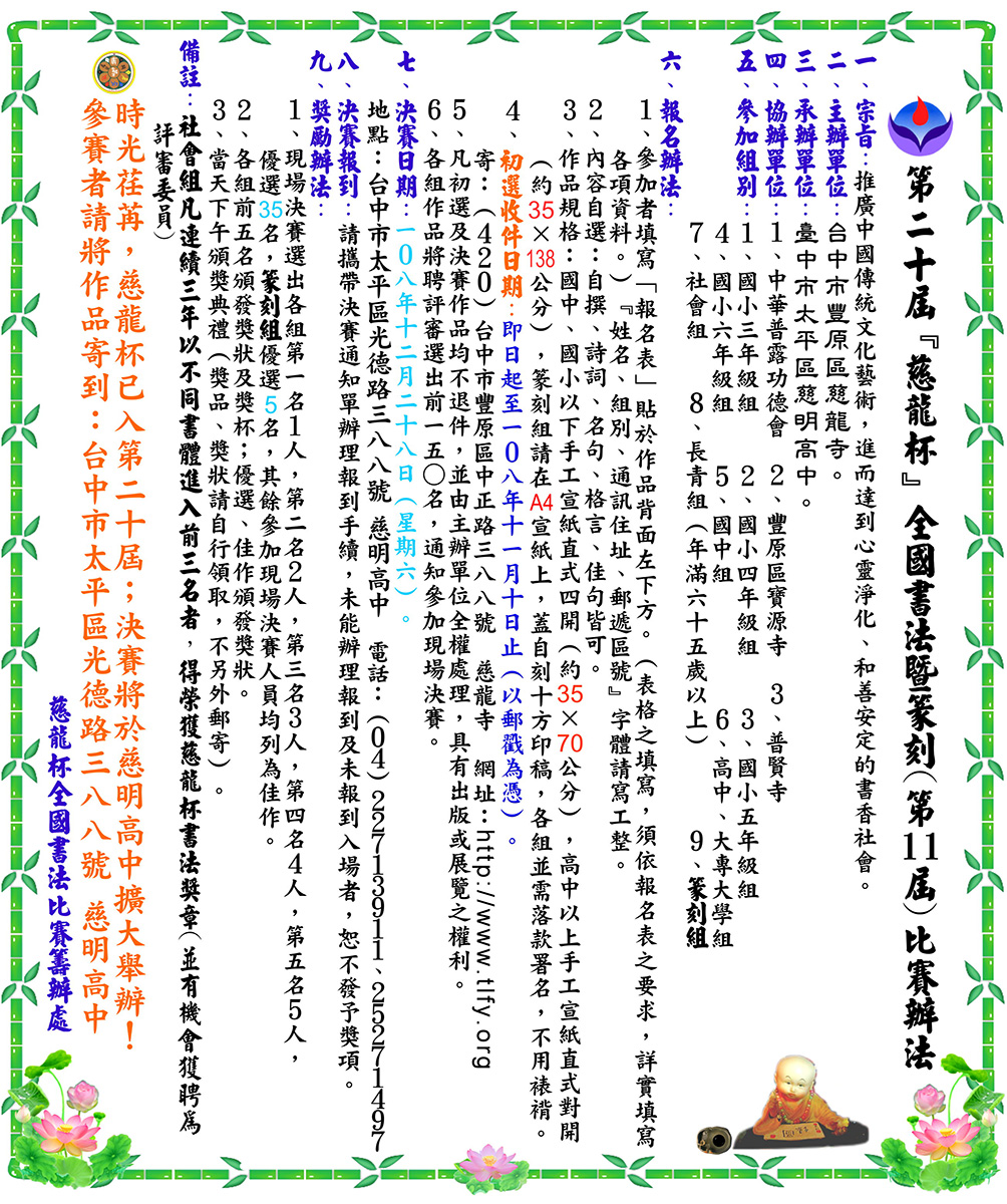 第二十屆慈龍杯全國書法暨篆刻(第十一屆)比賽辦法